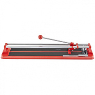 Предназначен для резки керамической кафельной плитки толщиной до 16 мм и длиной от 400 до 600 мм (в зависимости от модели). Режущим элементом является ролик из твердого сплава ВК-8. Основание – цельнолитая станина, благодаря которой обеспечивается устойчивость инструмента на верстаке и абсолютная неподвижность разрезаемой плитки на обрезиненной поверхности станины. Две трубчатые направляющие изготовлены из хромированной стали с антикоррозийной пропиткой, что обеспечивает свободный ход каретки по направляющим в процессе резки. Каретка представляет собой массивный цельнолитой закрытый корпус. Благодаря шариковым подшипникам она перемещается по направляющим свободно даже при их загрязнении. Отсутствие люфтов (зазоров) в каретке позволяет выполнять рез максимально точно. Модели данных плиткорезов снабжены металлическим угольником для регулировки размера и дополнительной фиксации отрезаемой заготовки.