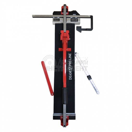 Профессиональный плиткорез для прямой резки керамики одинарного и двойного обжига, каменно-керамических изделий. Несущая каретка инструмента охватывает рельс с двух сторон и передвигается посредством шарикоподшипникового механизма. Способ резки - от себя. Также для удобства работы на станке есть лазерный указатель реза. Плиткорез снабжен точной линейкой, и дополнительными расширителями рабочей поверхности.
