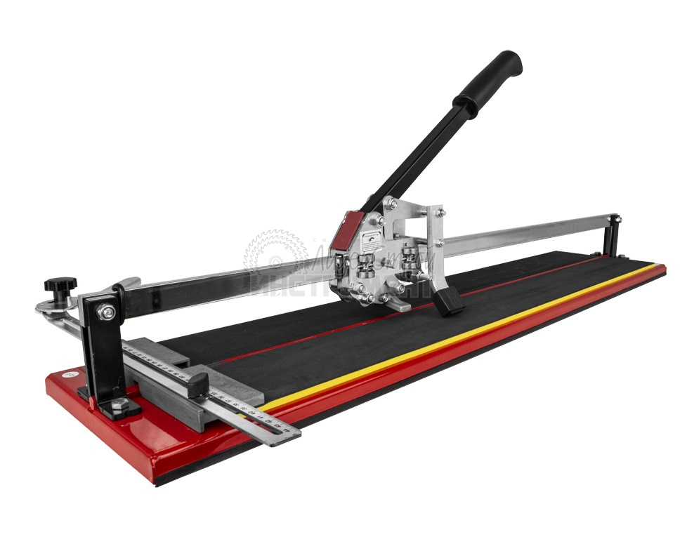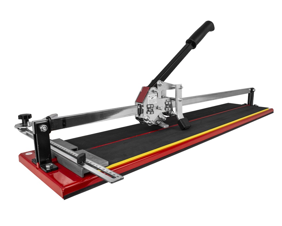 Предназначен для резки керамической кафельной плитки толщиной до 16 мм и длиной от 400 до 600 мм (в зависимости от модели). Режущим элементом является ролик из твердого сплава ВК-8. Основание – цельнолитая станина, благодаря которой обеспечивается устойчивость инструмента на верстаке и абсолютная неподвижность разрезаемой плитки на обрезиненной поверхности станины. Две трубчатые направляющие изготовлены из хромированной стали с антикоррозийной пропиткой, что обеспечивает свободный ход каретки по направляющим в процессе резки. Каретка представляет собой массивный цельнолитой закрытый корпус. Благодаря шариковым подшипникам она перемещается по направляющим свободно даже при их загрязнении. Отсутствие люфтов (зазоров) в каретке позволяет выполнять рез максимально точно. Модели данных плиткорезов снабжены металлическим угольником для регулировки размера и дополнительной фиксации отрезаемой заготовки.