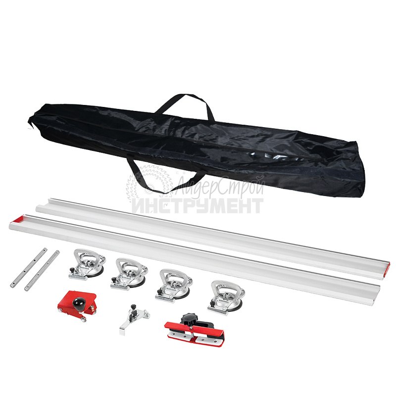Высокое качество изготовления каретки, алюминиевых направляющих, система их соединения гарантируют точность резки. За счет применения вакуумных присосок система жестко фиксирует положение направляющей на плите.