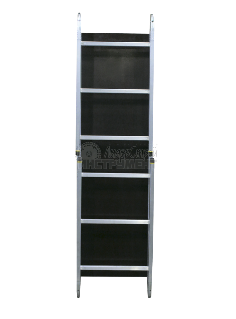 водостойкий нескользящий настил из ламинированной фанеры легко снимается, при этом подмости трансформируются в шарнирную лестницу