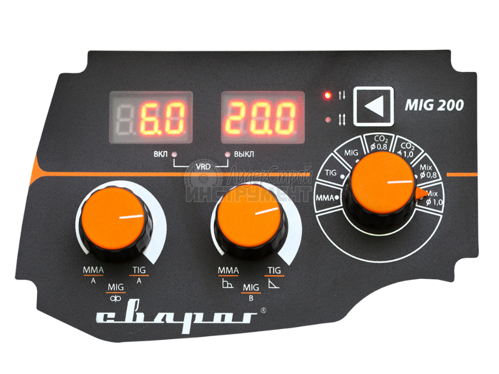 PRO MIG 200 (N229) — является универсальным источником сварочного тока для механизированной MIG, MAG и FCAW сварки, аргонодуговой сварки постоянным током (TIG), а также ручной дуговой сварки покрытыми электродами (MMA) При механизированной сварке в среде защитных газов данная модель предлагают как синергетические, так и обычные настройки для комфортной и продолжительной сварки различныхметаллов, в том числе алюминия. Два цифровых дисплея на передней панели обеспечивают контроль необходимых параметров. Смена полярности сварки предусмотрена как для ручной дуговой, так и для механизированной (полуавтоматической) сварки. Способ ручной дуговой сварки покрытым электродом (MMA) является дополнительной функцией с возможностью регулирования сварочного тока. Для осуществления такого способа сварки необходимо приобрести электрододержатель. Аргонодуговая сварка (TIG) в данном оборудовании осуществляется при подключении специальной кнопочной горелки. При TIG сварке аппарат позволяет работать в режимах 2T и 4T. Поджиг дуги осуществляется касанием TIG-Lift.