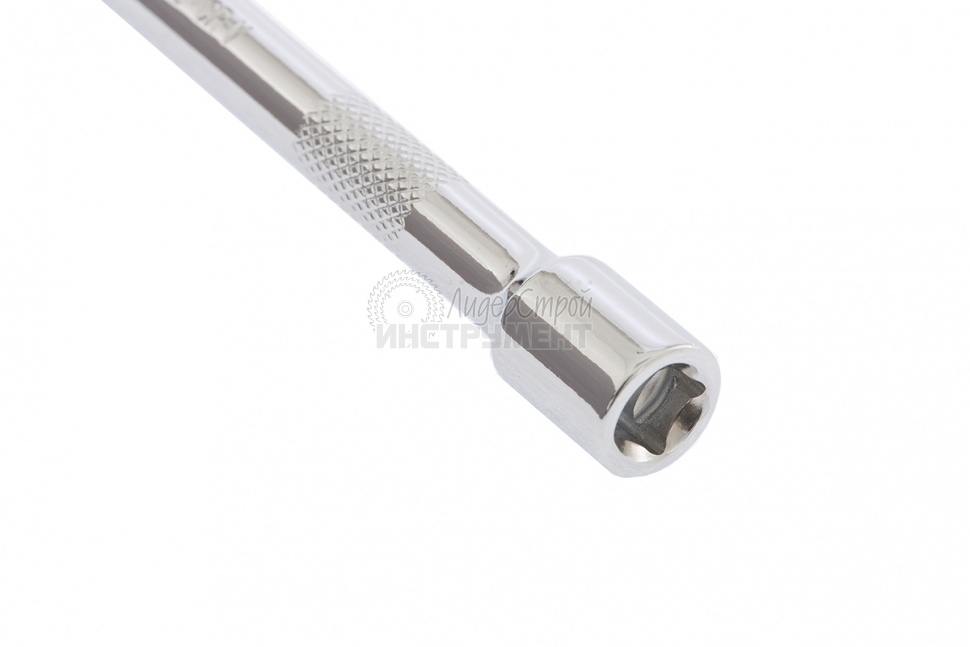 Изготовлен из хромванадиевой стали и имеет полированное хромовое покрытие. Имеет посадочное место и присоединительный квадрат 1/2" с шариковым фиксатором. Используется для работы со съемными торцевыми головками, карданными шарнирами и др. в труднодоступных местах.