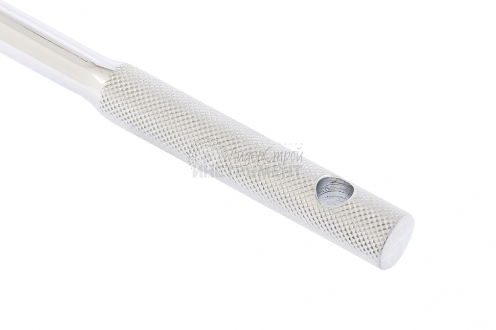 Изготовлен из хромванадиевой стали и имеет полированное хромовое покрытие. Имеет посадочное место и присоединительный квадрат 1/2" с шариковым фиксатором. Используется для работы со съемными торцевыми головками, карданными шарнирами и др. в труднодоступных местах.
