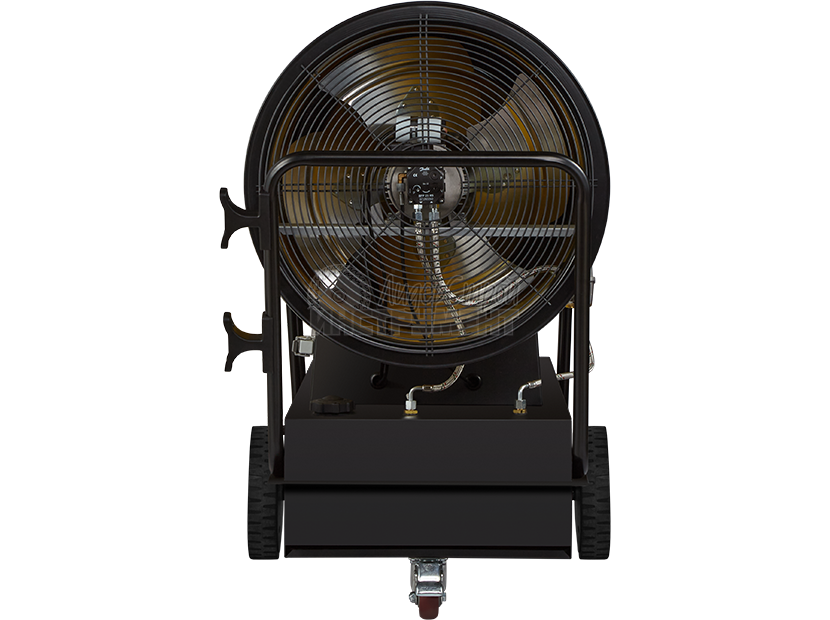 Воздухонагреватель дизельный прямого нагрева Ballu BHDP-120 серии Tundra предназначен для обогрева нежилых помещений и локального прогрева рабочих поверхностей. Тепловая мощность прибора составляет 120кВт. При работе дизельной пушки воздушный поток, проходя через защитную решётку – втягивается в камеру сгорания. Там он смешивается с распылённым форсункой дизельным топливом, которое при помощи мощного насоса под высоким давлением подаётся из топливного бака, образуя воздушно – топливную смесь. При помощи 12kV электродов смесь поджигается и сгорает, а затем - выбрасывается наружу, смешиваясь с продуктами сгорания и с основной массой поступаемого воздуха, тем самым нагревая его. Теплоотражающий экран, расположенный в передней торцевой части корпуса прибора- служит препятствием для вырывающегося открытого пламени и обеспечивает равномерный прогрев помещения либо обогреваемой рабочей поверхности.
