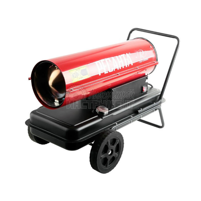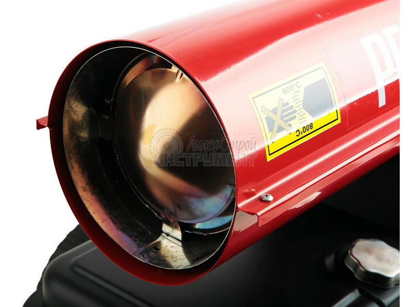При использовании оборудования важно обеспечить вентиляцию помещения, так как при прямом нагреве в воздух вместе с теплом попадают отходы сгорания топлива. Корпус устройства изготовлен из термостойкого металла высокого качества и покрыт антикоррозийным покрытием. Модель оснащена оптическим контролем пламени, термостатом и датчиком перегрева. Топливный бак объемом 50 литров обеспечивает длительную работу без перерыва.