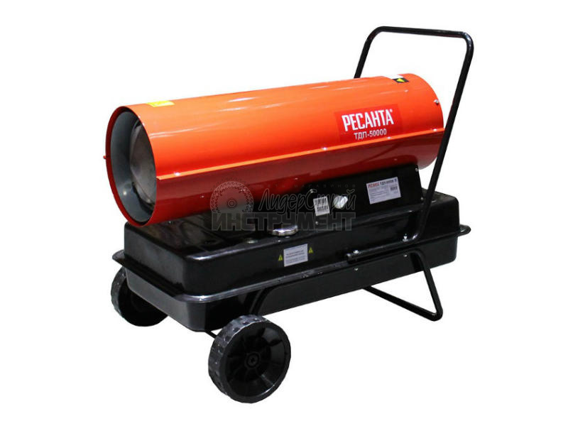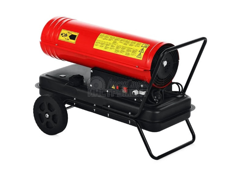 Тепловая мощность - 50 кВт. Объем топливного бака - 38 литров. Расход топлива - 4 литра в час. Потребление электроэнергии довольно экономично: только для работы вентилятора и электрики. Корпус с антикоррозийным покрытием способен выдержать перепады температур и повышенную влажность. Термостат поддерживает температуру от -10 до +45 градусов. В случае непредвиденного гашения пламени, фотоэлемент в камере сгорания блокирует подачу топлива и отключает прибор. Для транспортировки предусмотрены рукоятка и прорезиненные колеса.