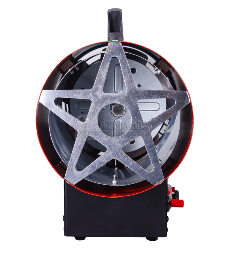 Сжиженный газ создает высокую температуру в камере сгорания тепловой пушки. Электрическая энергия однофазной сети необходима для работы вентилятора и функционирования автоматических узлов. Зажигание осуществляется с помощью пьезоэлектрического элемента. Теплопушка отличается экономичным расходом топлива 0,6-0,9 кг/час. Подача газа осуществляется под давлением 0,7 Бар. Контроль пламени происходит с помощью термодатчика из биметалла. Для обеспечения пожарной безопасности предусмотрена система защиты от перегрева. При отсоединении газового шланга тепловая пушка выполняет функцию вентилятора.