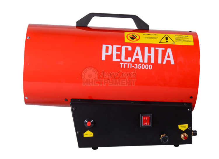 Газовая теплопушка Ресанта ТГП-35000 поможет обогреть нежилое помещение, не имеющее отопительной системы. Устройство не нуждается в длительном монтаже, легко переносится в руках, экономично расходует топливо и очень быстро наполняет теплым воздухом помещение.