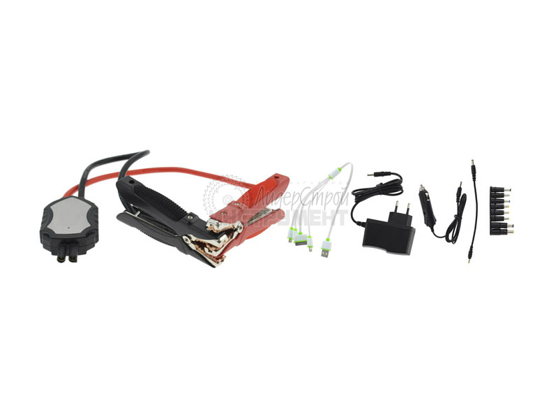 Имеются выходы для подключения пусковых кабелей (EC-5), питания ноутбуков (12/16/19В-3,5А), зарядки телефонов и гаджетов (USB 5В-2,1А), разъем для сетевого адаптера зарядки устройства (15В-1А).