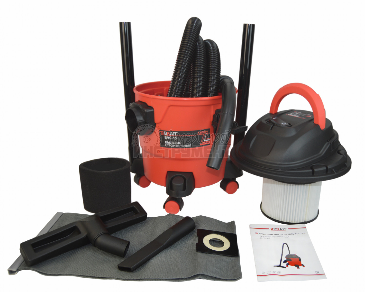 Пылесос строительный BVC-15 используется для уборки в помещениях: сбора древесной стружки и опилок, пыли, легких фракций строительного мусора, образовавшегося при работе ручных и электрических машин (сухая уборка) и сбора воды с поверхности пола (влажная уборка).