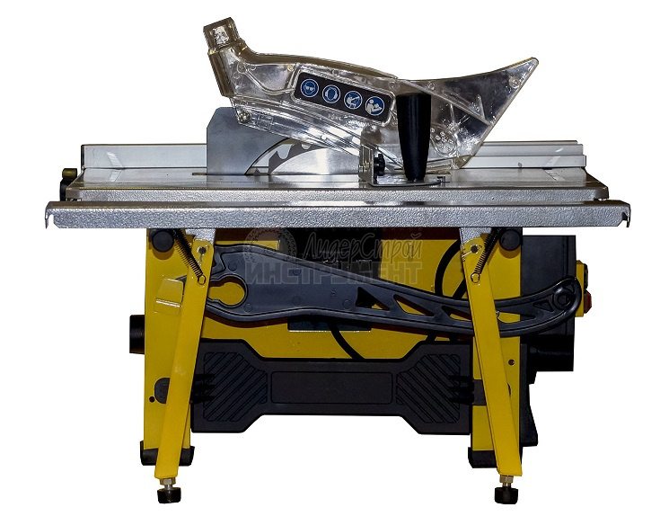 Корпус изделия сварной, закрытый, изготовлен из листовой стали, имеет отверстие для установки патрубка для отвода стружки (Ø 100 мм), снабжен специальными держателями для хранения толкателя, углового упора, параллельного упора, ключа и пильных дисков.