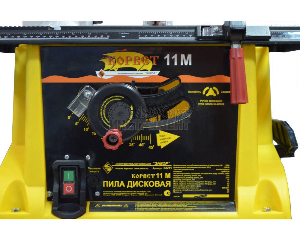 При наличии специальной оснастки Корвет-11М пилит не только заготовки из дерева, но и ламинат, пластик, мягкий металл (алюминий и пр.). Отличается большой мощностью и надежностью, неприхотлив в обслуживании.