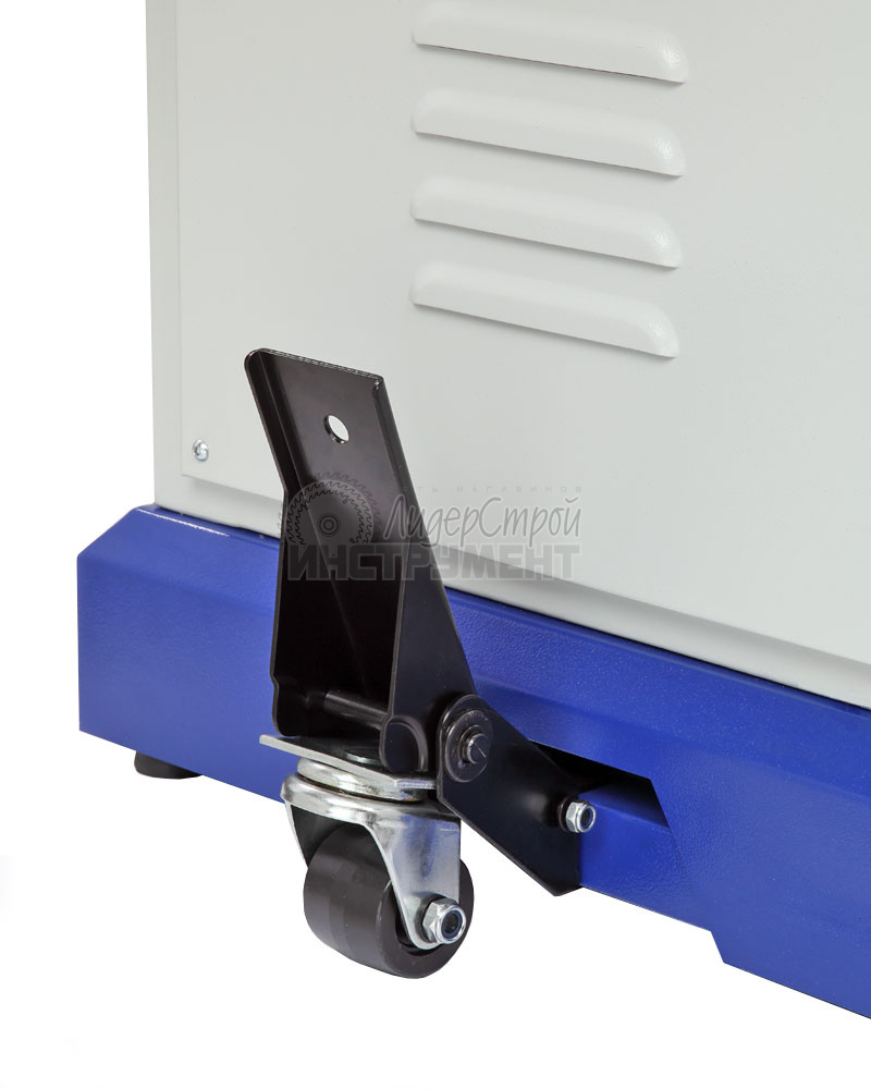 К нижней части корпуса крепиться устройство для перемещения станка. Данная опция очень удобна и актуальна, т. к. несмотря на массу изделия в 270 кг перемещать станок по мастерской сможет один человек и без серьезных усилий.
