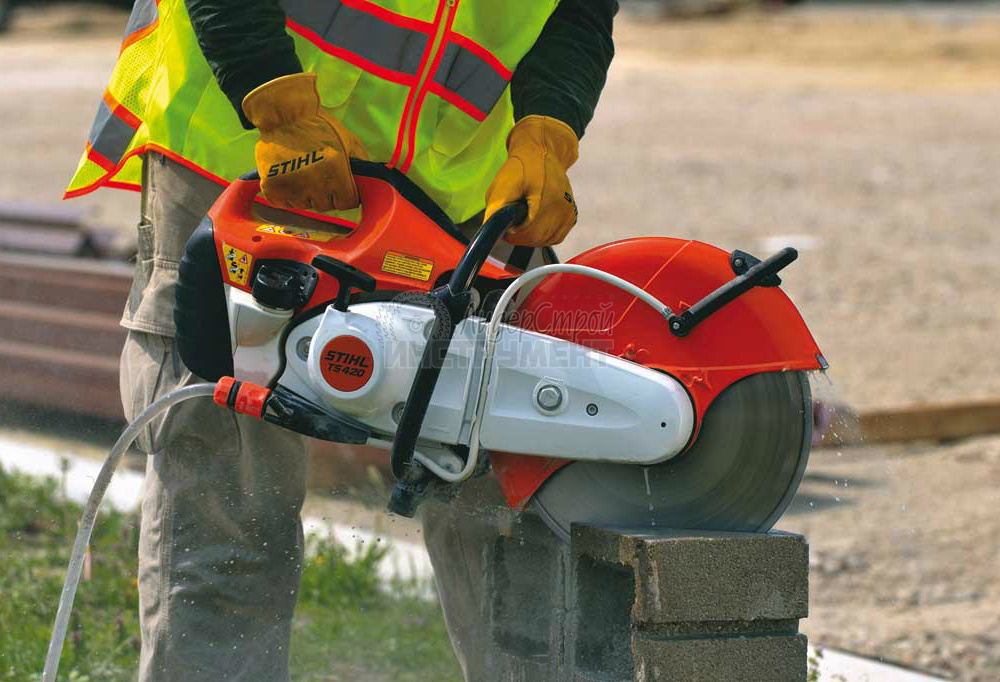 Преимущество модели TS 420 – компактные габариты, высокая производительность и запас прочности для интенсивных нагрузок. В качестве оснастки используется абразивный диск диаметром 350 мм, обеспечивающий глубокий рез.