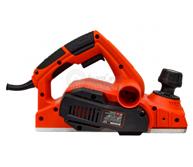 Для поддержания рабочего места в чистоте, инструмент оснащен патрубком для отвода пыли. С помощью широкой рукоятки можно не только крепко удерживать инструмент во время работы, но и регулировать глубину строгания от 0 до 3 мм. Для удобства работы продолжительное время на рукоятке предусмотрен фиксатор пусковой клавиши. Воздушное охлаждение исключает возможность перегрева в течение работы.