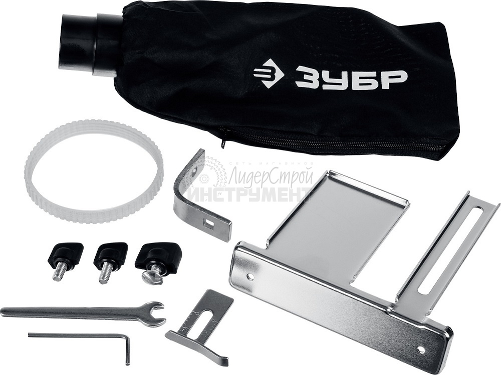 параллельный упор, пылесборный мешок, ограничитель глубины выборки паза, ключ, запасной ремень, инструкция