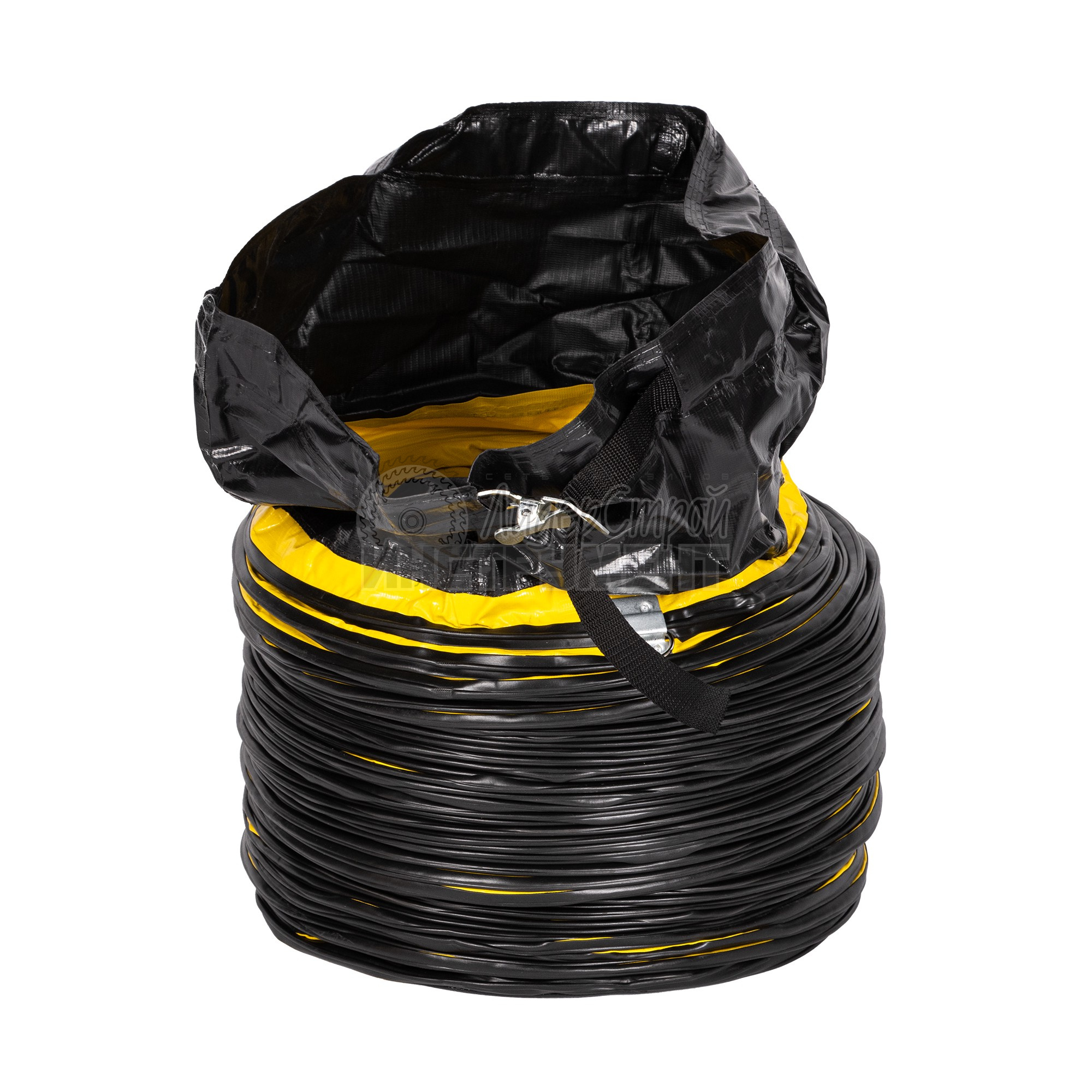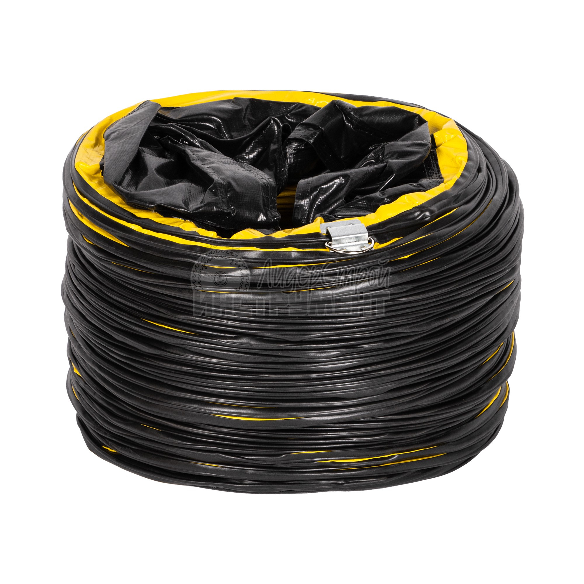 Выполнен из негорючей ПВХ ткани, водостойкий, армирован стальной спиралью.