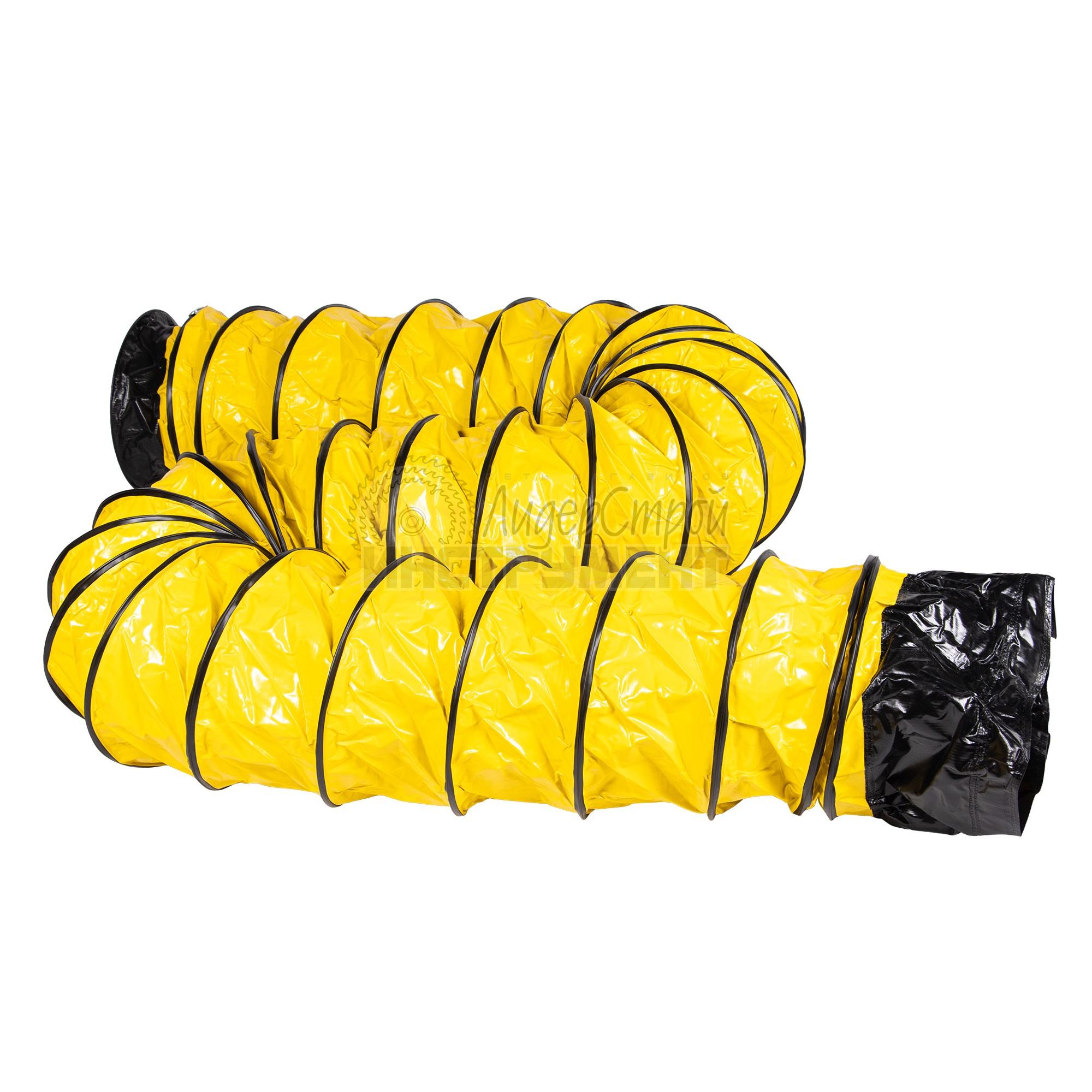 Выполнен из негорючей ПВХ ткани, водостойкий, армирован стальной спиралью.