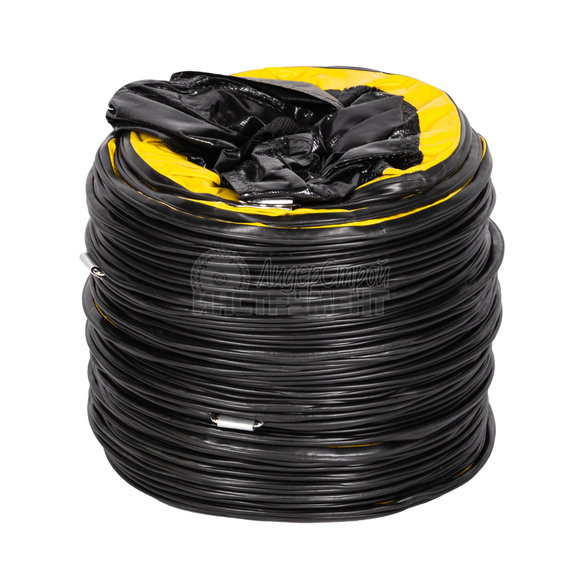 Выполнен из негорючей ПВХ ткани, водостойкий, армирован стальной спиралью.