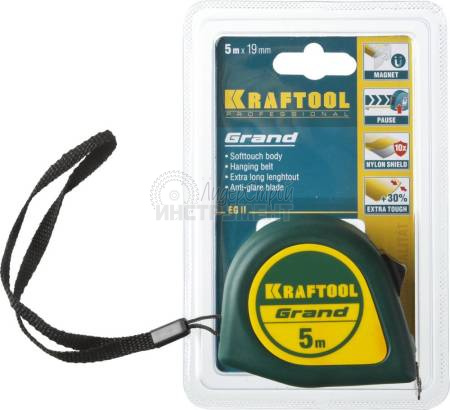 KRAFTOOL Grand 5м х 19мм нейлоновое покрытие магнитный крюк