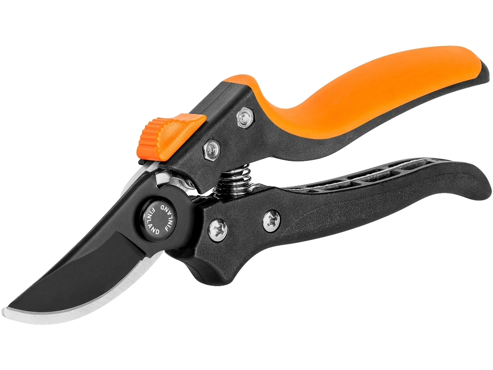 Секатор с прямым резом, двухкомпонентными рукоятками и петлевым фиксатором, расположенным на конце одной из рукояток. Предназначен для выполнения работ по уходу за садом. Рекомендуется для обрезки живых веток диаметром до 15 мм. Секатор изготовлен из стали 40Х и имеет оксидированное покрытие для защиты от коррозии. Режущее лезвие остро заточено.