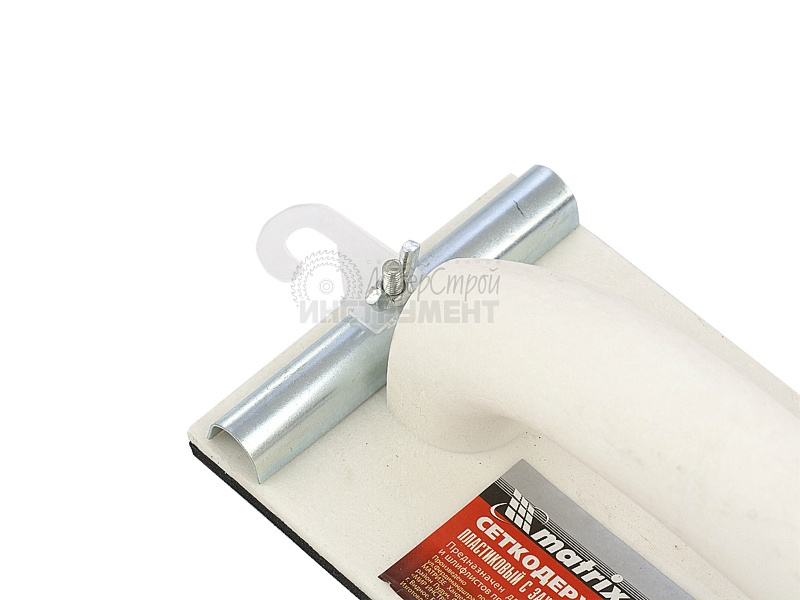 Сеткодержатель для шлифования пластиковый имеет специальные металлические фиксаторы для надёжного зажима шлифовальной бумаги и абразивных сеток. Отличительными особенностями данной конструкции являются: