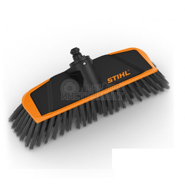 Щетка моечная Stihl с резиновой кромкой и встроенной форсункой высокого давления. Щетка не предназначена для обработки поверхностей из грубых материалов. Конструкция щетки обеспечивает одновременную обработку поверхности щетиной и водой под большим давлением. Благодаря складывающимся ручкам эта щетка также позволяет эффективно обрабатывать вертикальные поверхности.