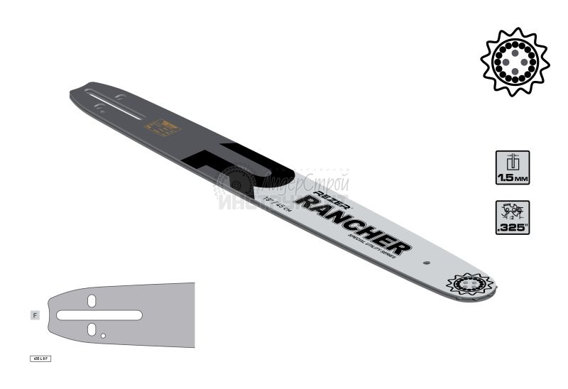 Шины Rezer со стандартным профилем для бензопил любительского и полупрофессионального класса и электропил с мощностью до 2,2 кВт. Имеют усиленное крепление ведомой звездочки, что обеспечивает дополнительную устойчивость к нагрузкам и продлевает срок службы. Так же, как шины с узким профилем, имеют узкий паз (slim) и длину от 35 до 50 см.