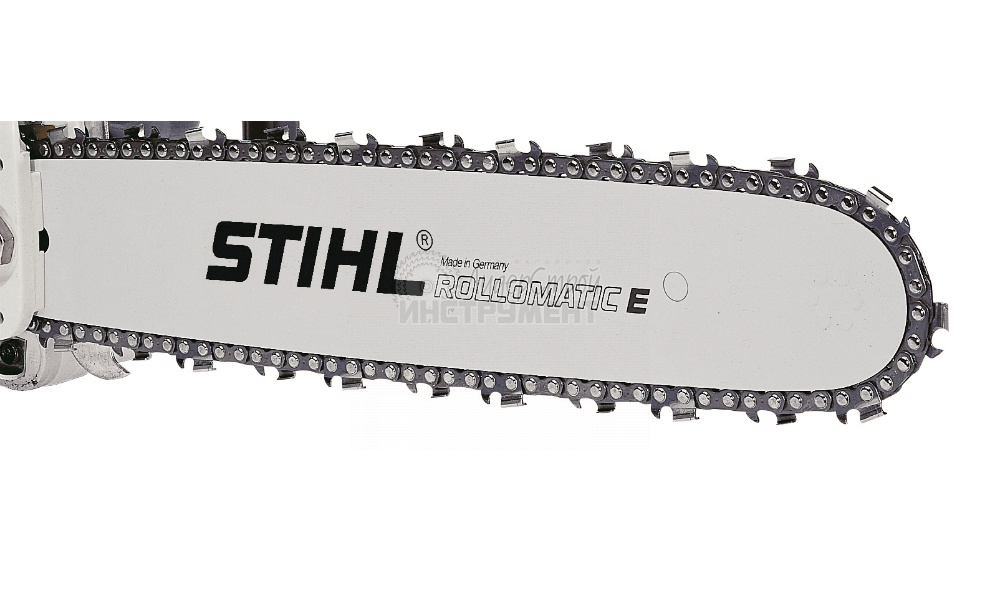 Шина Rollomatic E состоит из трёх металлических пластин, соединённых электросваркой, причём в средней пластине сделан большой вырез. Её преимущество – высокая стабильность при малом весе. Прочные направляющие шины Rollomatic E могут использоваться для любых работ.