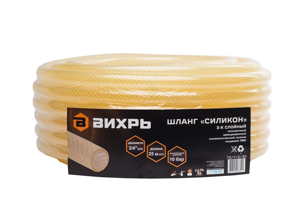 Шланг армированный 3-слойный 3/4" 25м прозрачный "Силикон" ВИХРЬ 73/7/2/30 73/7/2/30 купить по цене 1 940 руб - интернет-магазин ЛидерСтройИнструмент