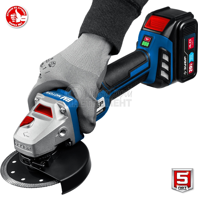 Характеристики: шлифмашина угловая аккумуляторная зубр профи ab-125-42 2х4ah в Уфе