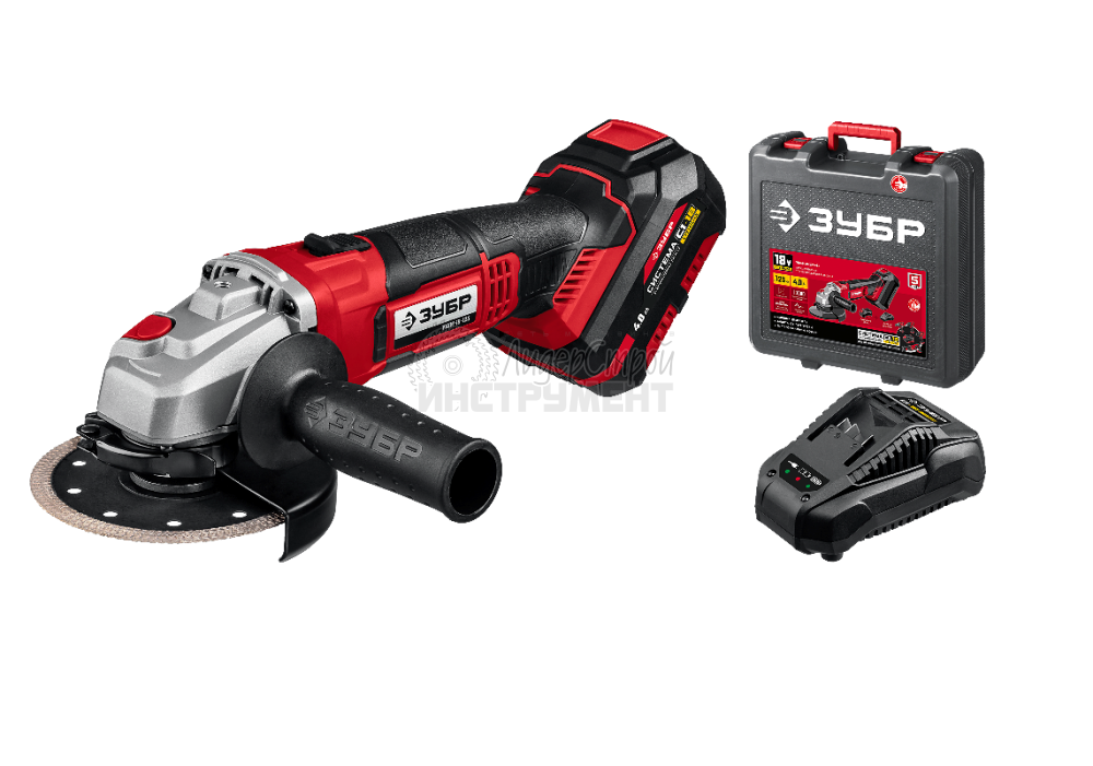 Характеристики: шлифмашина угловая аккумуляторная зубр ушм-18-125-41 1х4ah в Уфе