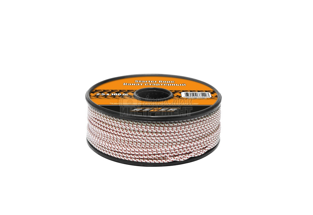 Стартерный шнур производства REZER используется для ручного запуска двухтактных и четырехтактных двигателей садовой и уборочной техники (бензопилы, газонокосилки, генераторы и пр.). Артикул 03.011.00004.