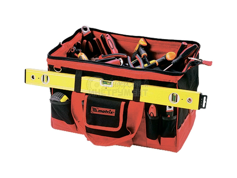 Сумка MATRIX пригодится как для бытового хранения инструментов, так и для их переноса профессиональными рабочими по рабочей площадке. Артикул – 90256.
