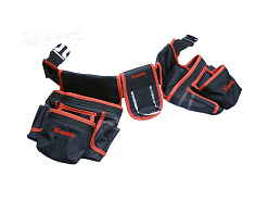 Двойная сумка-пояс позволяет переносить весь основной инструмент необходимый для проведения работ. На ремень одеты две сумки с карманами и держатель молотка, которые служат не только для переноски инструмента, но и для организации удобного доступа к нему. Все детали пояса изготовлены из прочного синтетического материала.