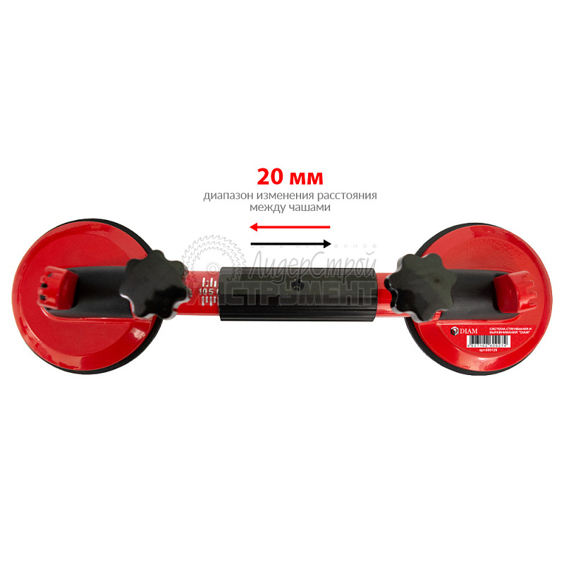 Система стягивания и выравнивания DIAM предназначена для стягивания и выравнивания уровня каменных плит с высокой точностью, а так же тяжелых деталей с гладкой поверхностью: керамогранит, листовой металл, изделия из стекла и пластика. Система имеет регуляторы по высоте и крепежные элементы для фиксации заготовок в нужной плоскости. Регулировка расстояния между чашами в диапазоне 20 мм. Присоски 115 мм диаметром, позволяют выравнивать уровень плит не только в горизонтальном, но и в вертикальном положении. Прочно держится на камне и легко снимается.