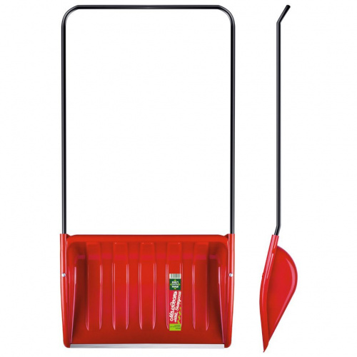 Скрепер для уборки снега БелЦентроМаш 1840 - лопата скрепер пластиковая с черенком, изготовленная из металла, и совком, изготовленным из ударопрочного морозостойкого пластика, имеющим алюминиевую окантовку.
