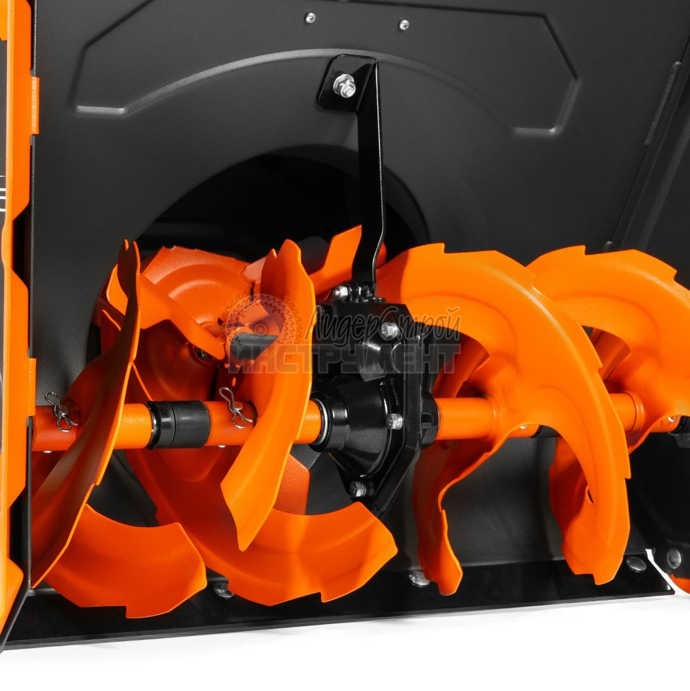 Двухступенчатая система очистки позволяет быстрее очищать территорию от снега.