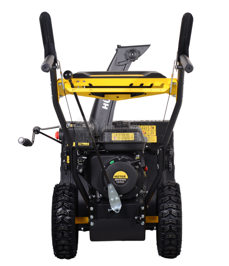 Агрегат оснащен мощным четырехтактным бензиновым двигателем с запасом силы в 7 л.с., обеспечивающим уверенную уборку плотного и глубокого снежного покрова. Снегоуборщик комплектуется ручным стартером, простым и надёжным в эксплуатации.