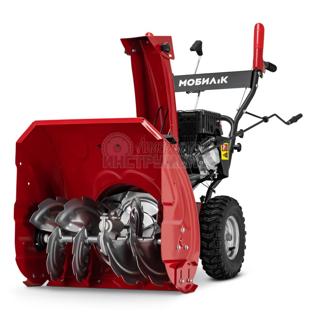 Двухступенчатая система очистки позволяет быстрее очищать территорию от снега.