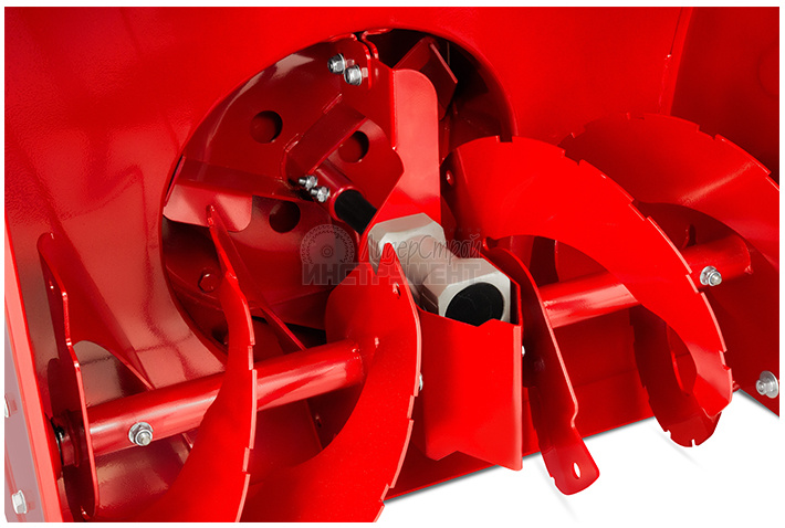 Зубчатый шнек выполнен из прочной стали, хорошо справляется со слежавшимся снегом.