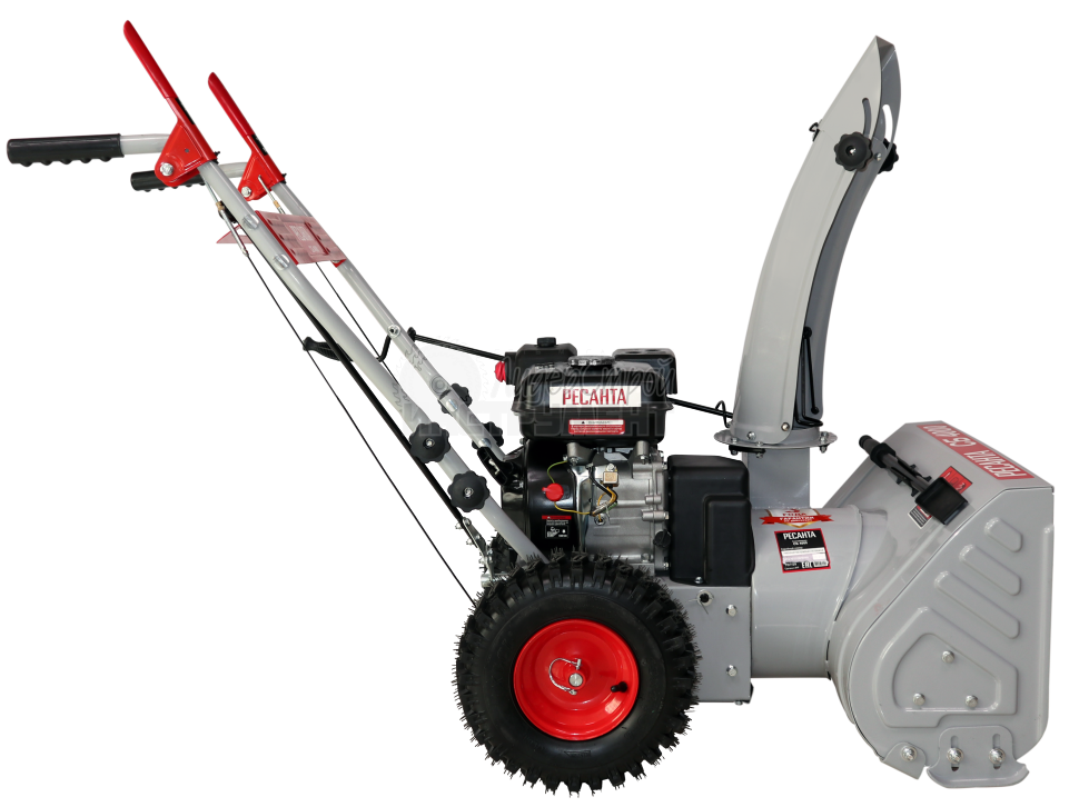 Рабочая система снегоуборщика Ресанта представляет собой снегозаборный желоб со шнеком, а также вентилятор в форме крыльчатки и желоб для выброса снега .Агрегат приводится в действие четырехтактным поршневым одноцилиндровым бензиновым двигателем внутреннего сгорания с воздушным охлаждением.