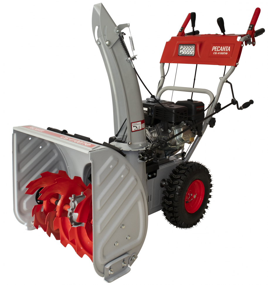Рабочая система снегоуборщика Ресанта представляет собой снегозаборный желоб со шнеком, а также вентилятор в форме крыльчатки и желоб для выброса снега. Агрегат приводится в действие четырехтактным поршневым одноцилиндровым бензиновым двигателем внутреннего сгорания с воздушным охлаждением.