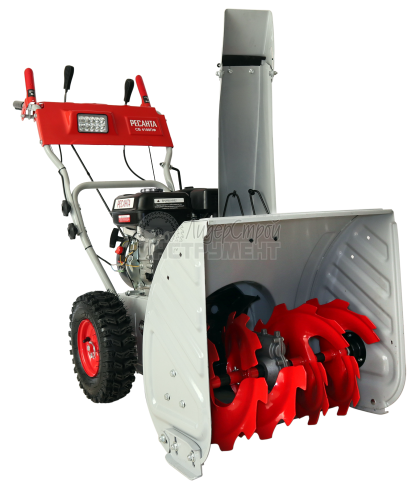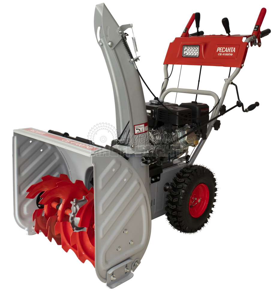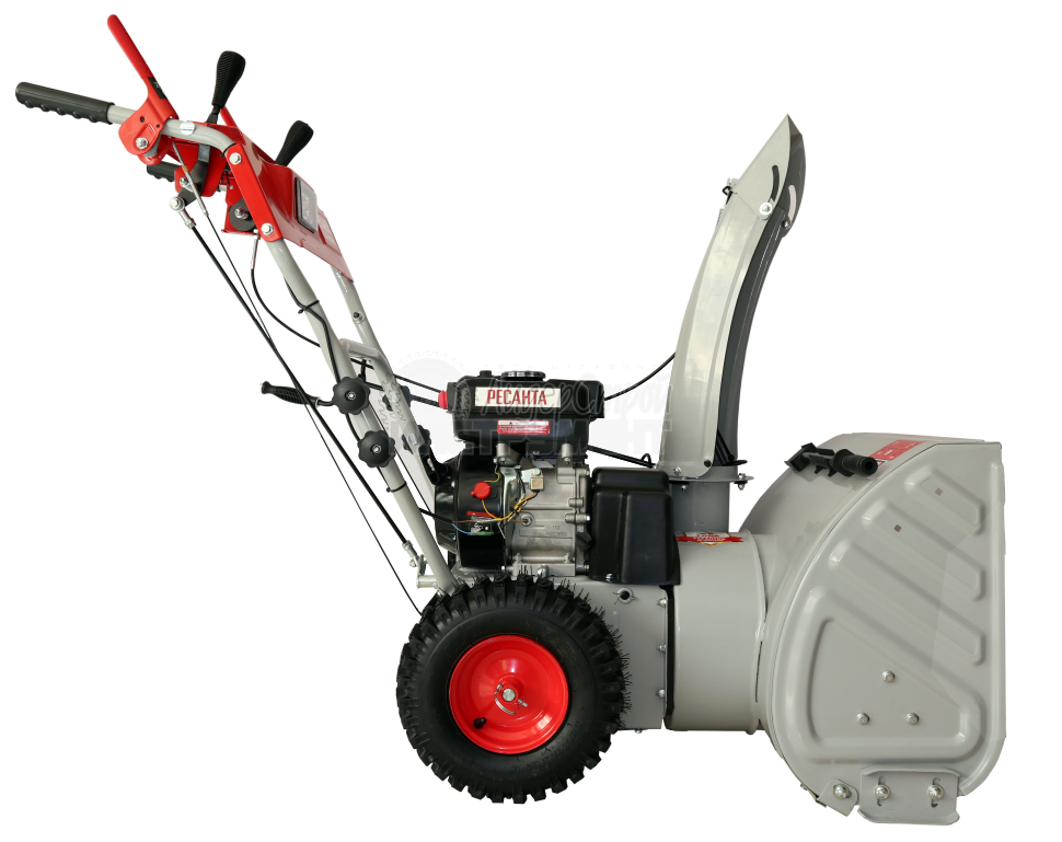 Рабочая система снегоуборщика Ресанта представляет собой снегозаборный желоб со шнеком, а также вентилятор в форме крыльчатки и желоб для выброса снега. Агрегат приводится в действие четырехтактным поршневым одноцилиндровым бензиновым двигателем внутреннего сгорания с воздушным охлаждением.