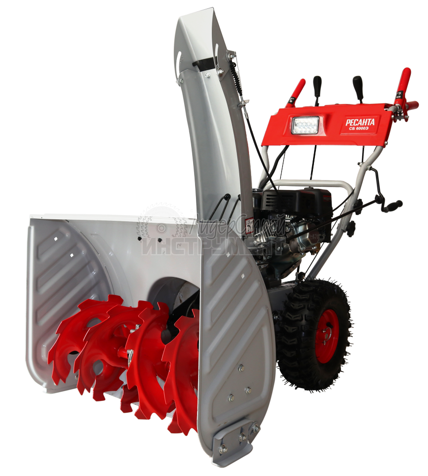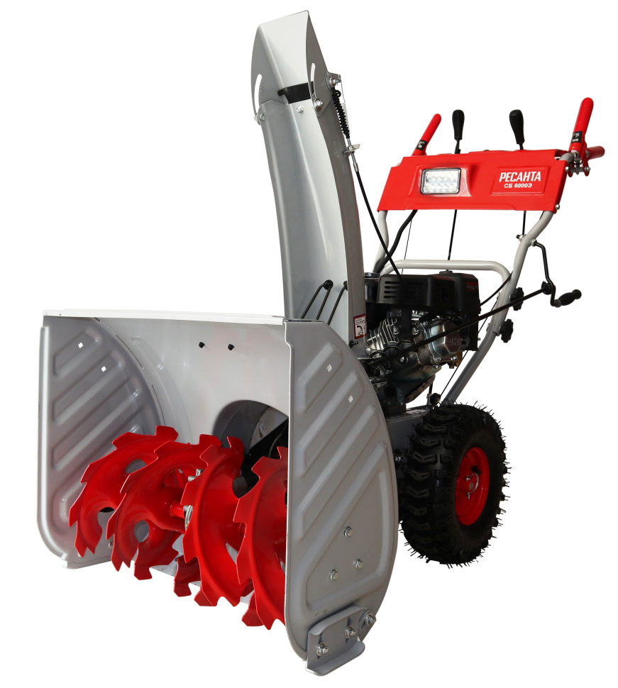 Рабочая система снегоуборщика Ресанта представляет собой снегозаборный желоб со шнеком, а также вентилятор в форме крыльчатки и желоб для выброса снега. Агрегат приводится в действие четырехтактным поршневым одноцилиндровым бензиновым двигателем внутреннего сгорания с воздушным охлаждением.