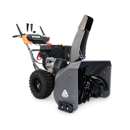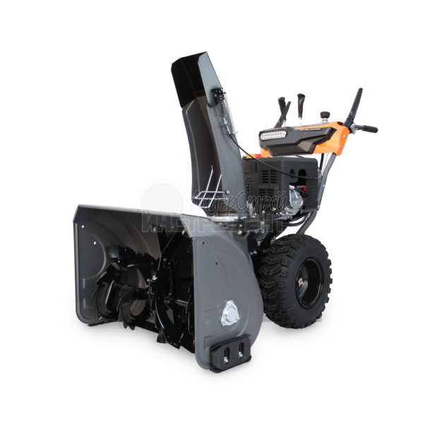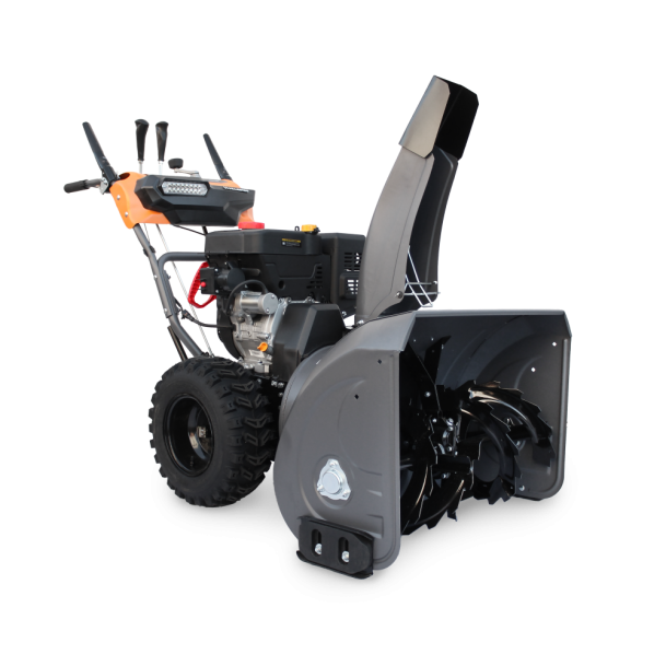 Снегоуборочный ковш изготавливается из стали толщиной 2 мм и усиливается ребрами жесткости. За счет этого выдерживает большие нагрузки. Ширина захвата снега – 76 см, дальность выброса до 15 м. Колеса большого диаметра, изготавливаются из эластичной резины, устойчивой к сильным морозам. Имеет функцию автоматической разблокировки дифференциала, которая повышает маневренность машины.