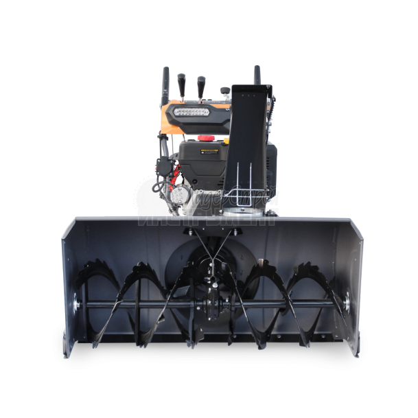 Крепкий стальной шнек с агрессивными зубьями увеличенной толщины справится с любым снегом, срезные болты защитят редуктор от повреждения. Ковш изготовлен из высокопрочной стали толщиной 2 мм, усиленный ребрами жесткости, выдерживает большую нагрузку. Ширина захвата имеет выдающийся размер - 107 сантиметров. Дальность выброса снега достигает 15 метров.