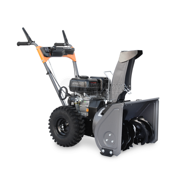 Элементы управления агрегатом расположены на рукоятке. Ручки переключения передач, установки направления выброса снега размещены на корпусе.