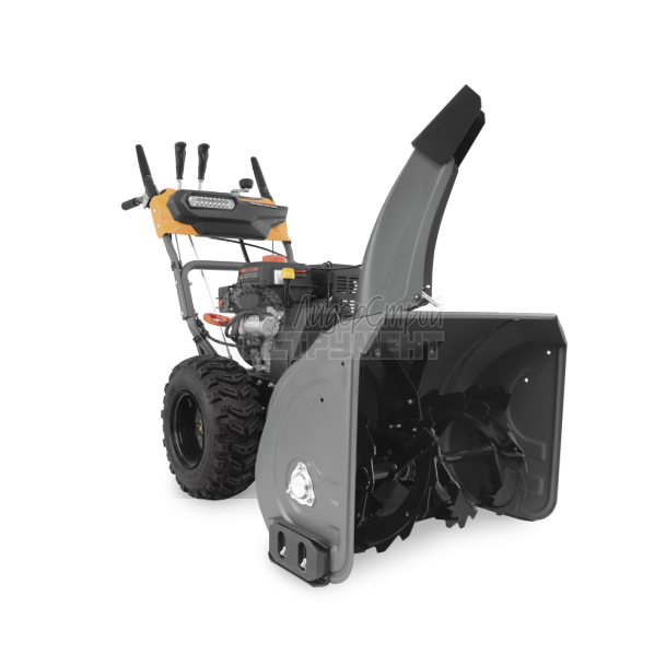 Крепкий стальной шнек с агрессивными зубьями увеличенной толщины справится с любым снегом, а срезные болты защитят редуктор от повреждений. Ковш изготовлен из высокопрочной стали толщиной 2 мм и усилен жесткими ребрами, что позволяет ему выдерживать большую нагрузку. Ширина захвата составляет 66 сантиметров. Дальность выброса снега у данной модели достигает 11 метров.